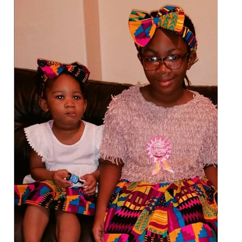 Dress your little girls up in our Ashanti Skirt and Head Bow Children's Set. Our matching Purple Kente set, is a must have for all little girls this season, giving them an elegant twist that brings out the intricate beauty and vibrant design of their Kente Cloth attire. All children's clothing's are set by UK age range guidance.