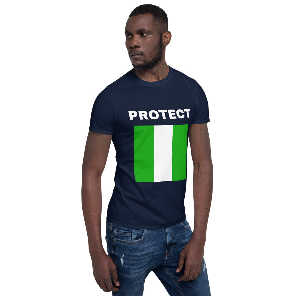 Our Protect Nigeria T-Shirt is made of a thicker, heavier cotton, but it's still soft and comfy with double stitching on the neckline and sleeves adding more durability to what is sure to be a favourite T shirt to wear.